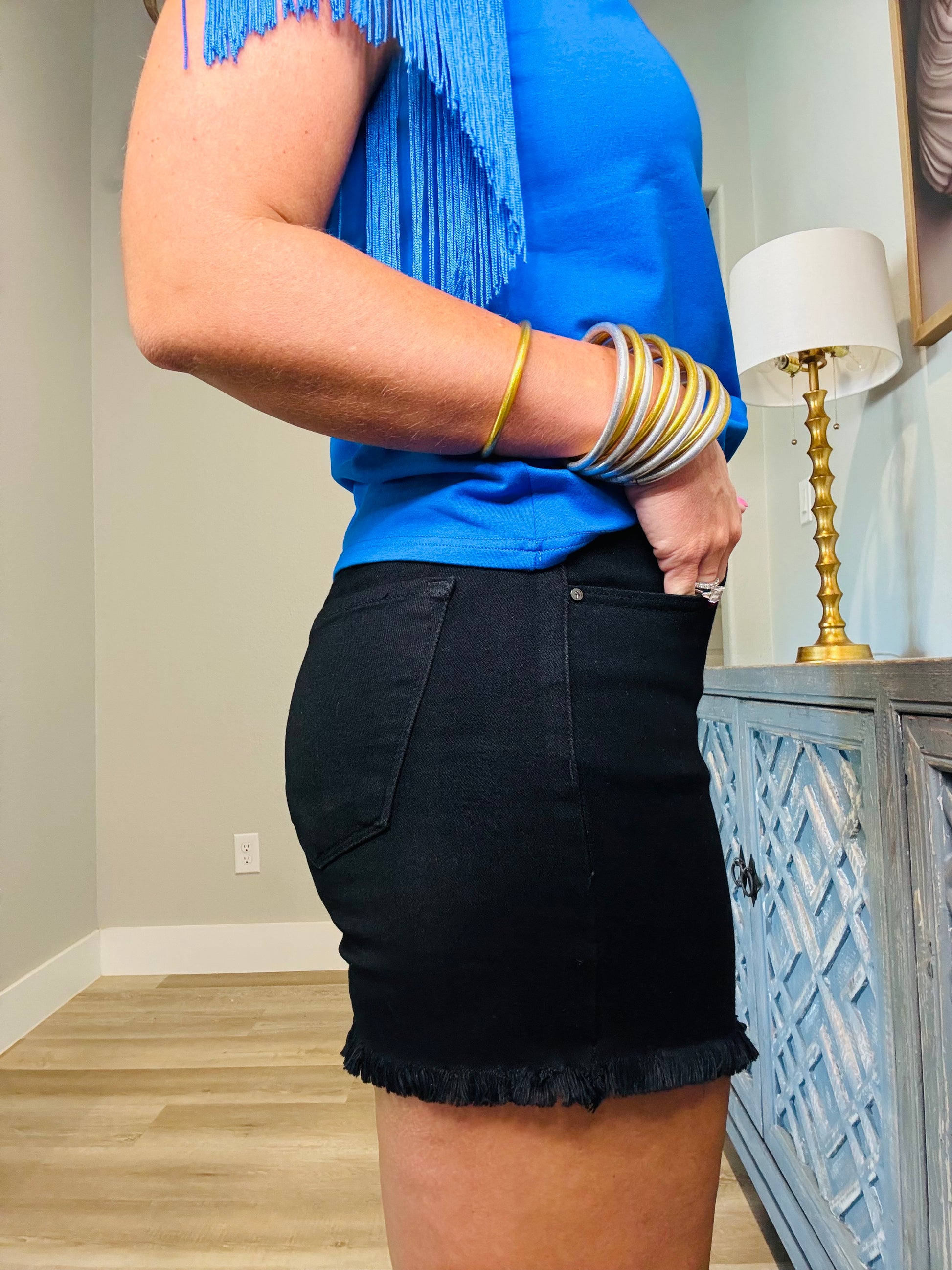 The comfiest denim shorts! Stretchy, high rise, and tummy control!